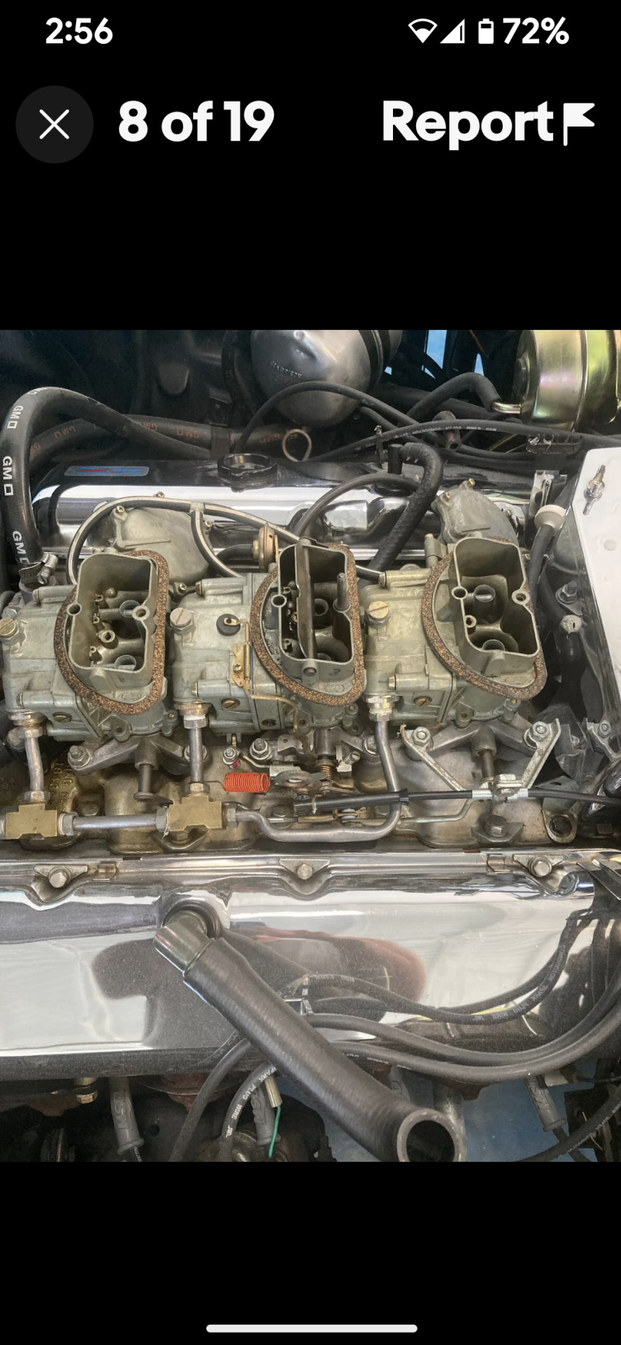 Resting between the heads was an aluminum tri-power intake