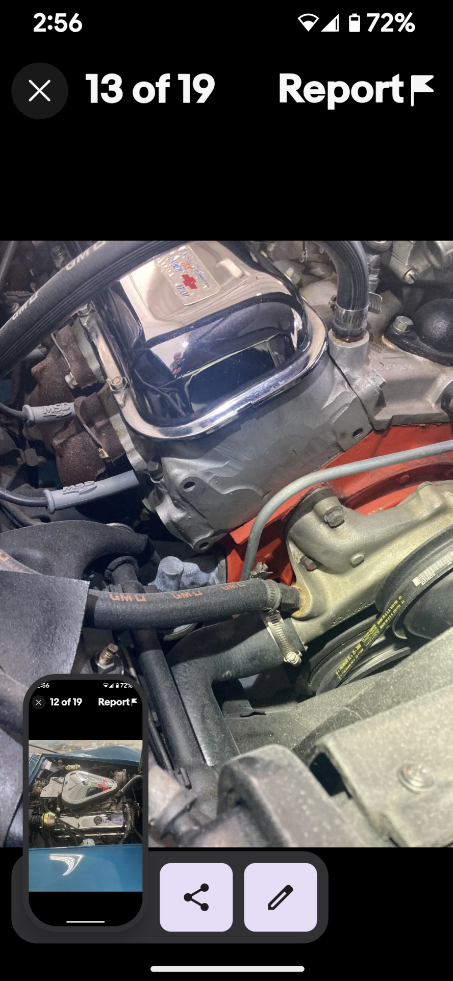 factory smog pump. It has a 5 blade clutch fan. All the gauges