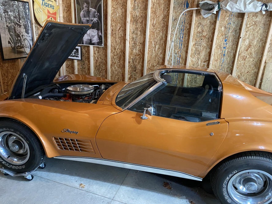 1971 Corvette Stingray Ontario Orange Automatic Transmission 350 Engine Not running 80% rebuild on engine Car is in good condition with t’tops and removable rear window 77,000 miles Original heads included Garage Kept