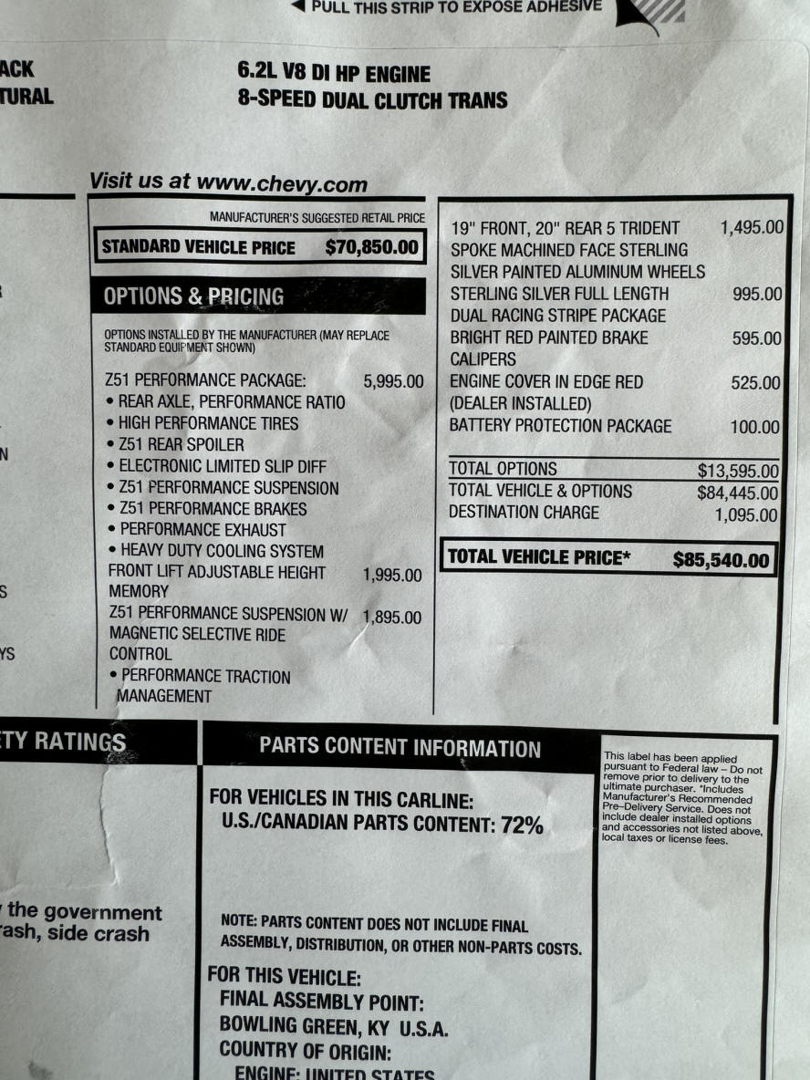 2021 C8 3LT Z51 suspension with magnetic ride control